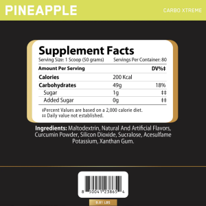 Obtenez vos glucides de manière saine et efficace avec notre Carbo Xtreme, un booster d'énergie. En plus des 49 grammes de glucides totaux, il s'agit d'une source de nutrition bien équilibrée fournissant 200 calories et 1 gramme de sucre. Il est facile à digérer, a des saveurs délicieuses et constitue un carburant pur pour vos muscles avant, pendant et après l'entraînement.