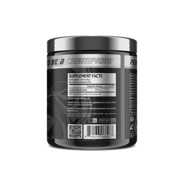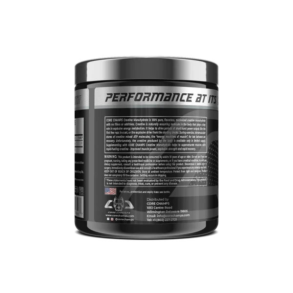 La créatine monohydrate CORE CHAMPS est 100 % pure, sans saveur et micronisée, sans agents de remplissage ni additifs. La créatine est une molécule naturellement présente dans le corps qui joue un rôle clé dans le métabolisme énergétique explosif. Elle contribue aux efforts brefs et intenses, comme les premières répétitions d'une série ou la poussée explosive au départ. Pendant l'effort, les réserves intramusculaires de créatine rechargent les molécules d'ATP, les « centrales énergétiques des muscles », pour une récupération optimale entre les séries. Malheureusement, la créatine produite par le corps est disponible en quantité limitée. La supplémentation en créatine monohydrate CORE CHAMPS permet de sursaturer les muscles en créatine à assimilation rapide, améliorant ainsi la puissance musculaire, la force explosive et la récupération.