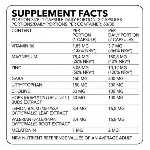 Le magnésium et la vitamine B6 contribuent à une réduction de la fatigue et de la fatigue, à un métabolisme énergétique normal et à une fonction psychologique normale.