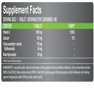 Comprimés de complément alimentaire à la vitamine C 1000 Notre formule de base de vitamine C est renforcée par l'ajout de calcium, de bioflavonoïdes d'agrumes et d'extrait de cynorrhodon La rose musquée contient des niveaux élevés de polyphénols, de caroténoïdes et de vitamines C et E, qui ont toutes de puissantes propriétés antioxydantes.