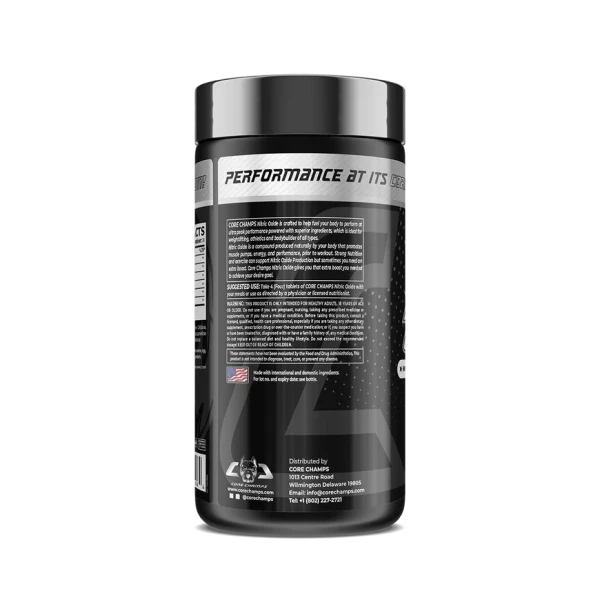 L'oxyde nitrique CORE CHAMPS est conçu pour optimiser vos performances grâce à des ingrédients de qualité supérieure, idéal pour la musculation, l'athlétisme et le bodybuilding. L'oxyde nitrique est un composé naturellement produit par votre corps qui favorise la congestion musculaire, l'énergie et les performances avant l'effort. Une alimentation équilibrée et un entraînement régulier contribuent à la production d'oxyde nitrique, mais un petit coup de pouce est parfois nécessaire. L'oxyde nitrique Core Champs vous apporte ce supplément d'énergie pour atteindre vos objectifs.