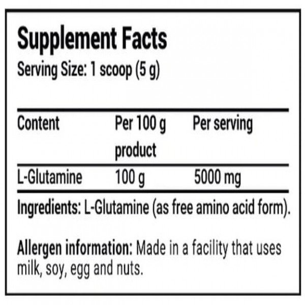 Mélangez 1 portion (5 g) de L-Glutamine à 100% avec 250 ml d'eau froide. En tant que complément alimentaire, consommez 1 à 2 portions par jour, une portion entre les repas et une portion avant le coucher. Les jours d'entraînement, prenez 1 portion avant, pendant ou après votre entraînement
