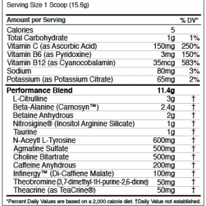 Faites-vous une super PUMP avec un max de Nitrosigine®, Citrulline et Agmatine, Jacked by Infinergy ™, Théobromine et TeaCrine®, et prolongez la séance avec CarnoSyn® et Betaine.