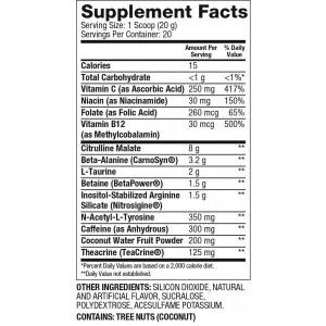 Amplifiez l’intensité de vos entraînements avec Citrulline Malate, Nitrosigine®, TeaCrine®, Beta-Alanine et caféine.