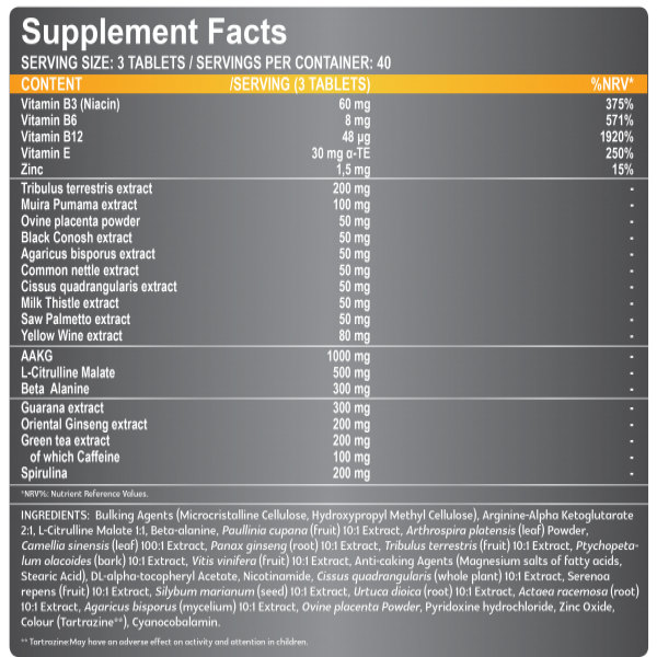 Stanabol-X Il contient 22 ingrédients actifs, un complexe de Tribulus terrestris, AAKG, citrulline malate bêta-alanine et plusieurs extraits de plantes populaires.